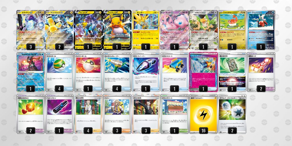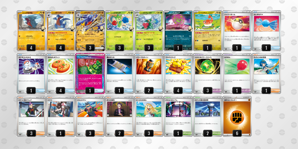 そのため、ロケット団のサポートは全て4枚ずつ採用しているのじゃ。次の環境の課題である手札干渉やベンチの展開力もロケット団のサポートで行うことができるため強力なのじゃ。